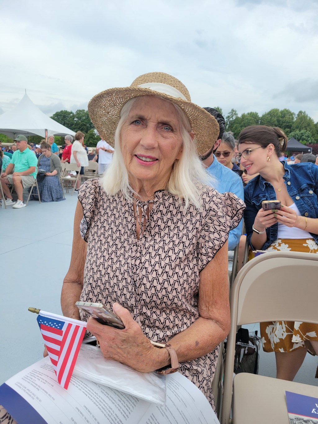 Perhaps there was a natural camaraderie amidst the thousands gathered that led to a more open chattiness among those sitting next to each other than in other audiences in which we’ve sat. We are always up for having a nice chat with our neighbors before a show or concert. Sometimes they happen. Sometimes they don’t. Sometimes they consist of quick pleasantries. Sometimes deeper conversations. But, here at the National D-Day Memorial on the 80th anniversary of D-Day, the crowd was bubbling with social energy. Each person sitting near us was as eager to hear what brought us here and where we were from as we were to hear of their path to this spot on this day.