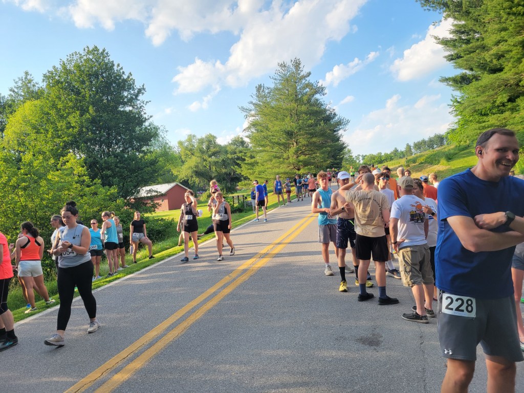 Our third race was a Thursday evening trail run at the Bear Branch Nature Center north of Westminster, Maryland. The drive to the race foreshadowed the course terrain – rural, hilly, and scenic. But our van cab’s air conditioning hid what proved to be two key features of the run – heat and humidity.
