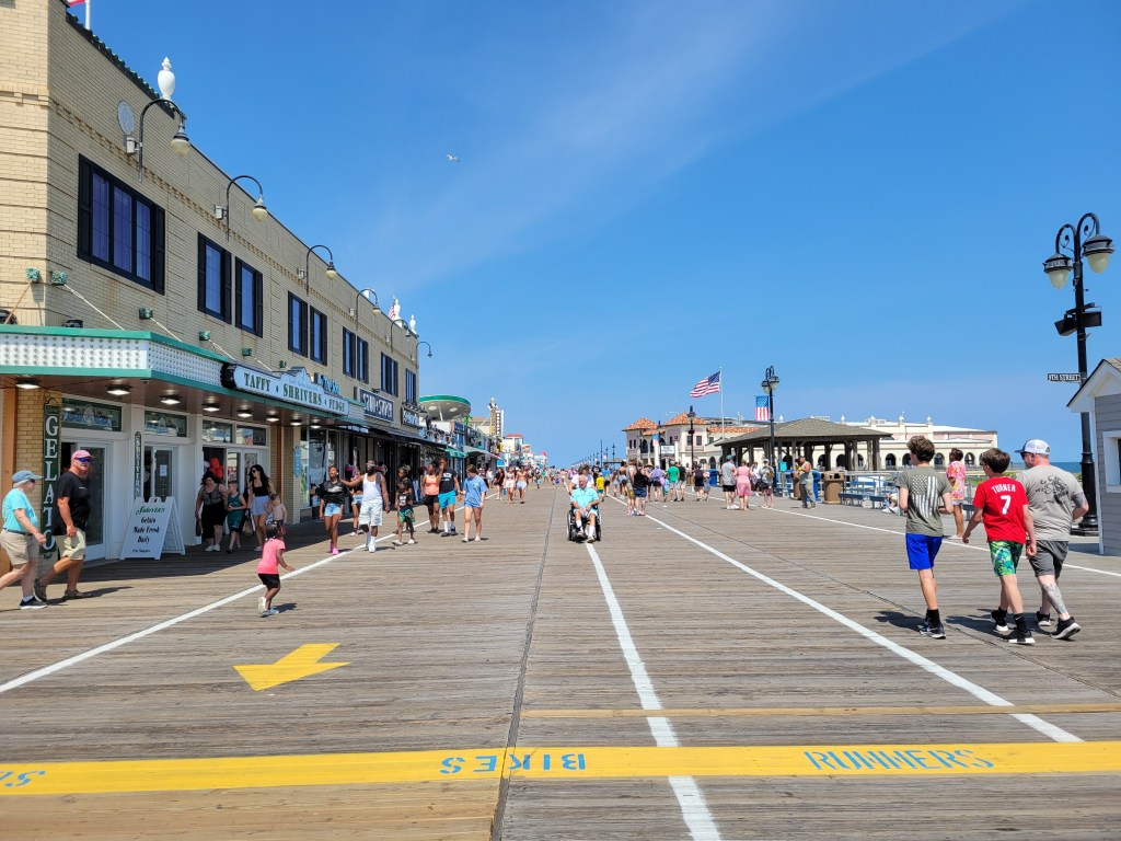 We stayed overnight in the driveway of a generous Harvest Host in a small neighborhood and made our way up the shore past Wildwoods through to Stone Harbor soon after waking, where we stopped to “have our morning” – Ryan in a coffee shop, Julie in the van down by the, well, you know. On our way out of Stone Harbor, where we learned Taylor Swift used to spend her summers and whet her whistle at local open mics, we stumbled upon the Wetlands Institute and decided to make a stop. Julie squealed at the sight of all the little turtles and we took in the stunning scenery of the miles of wetlands around us before heading to our second Ocean City of the trip. We got our taste of yet another boardwalk filled with what we have now come to know as the boardwalk staples – french fries, ice cream, cheeky t-shirts, salt water taffy, fudge, and all other manner of festive foods and activities.