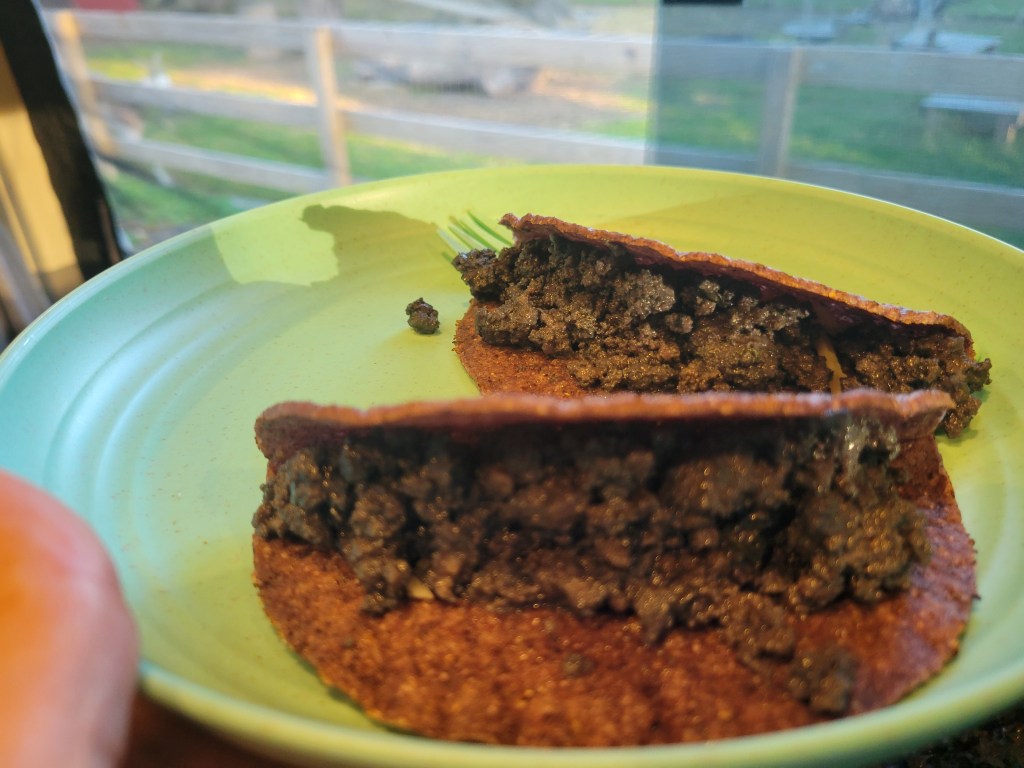 We found a special kind of peace hiking through the Pine Barrens, and an even more special kind of feeling on the drive after when we learned that its acidic and sandy soils made it the perfect spot for lots of blueberry farms! We happened to stop at a stunning one just minutes before closing time and, before we knew it, were driving away with 12 pints of organic blueberries picked by our own grubby little hands. The only question now was whether we would be able to get through 12 pints of blueberries before time had its way with them. We got started that evening by sharing a pint with our wonderful Harvest Host at their little animal sanctuary in rural New Jersey. We had a blast chatting with our host, who was quick to tell us how much his granddaughter loved those blueberries. We cooked ground beef for dinner and thought, what the heck? We’ve got lots of blueberries. We’ve had delicious blueberry chicken wings and mango salsa is always good on anything, let’s toss a pint of blueberries in with our ground beef and see what we get! You get purple beef, that’s what you get. We had purple beef tacos on purple taco shells. We prepared our precious purple picnic purposefully and playfully, peppered with a panoply of toppings, tossing them back with pep and persistence. What a panacea of perfection for our popping taste buds, pleasantly present in a purple culinary paradise.