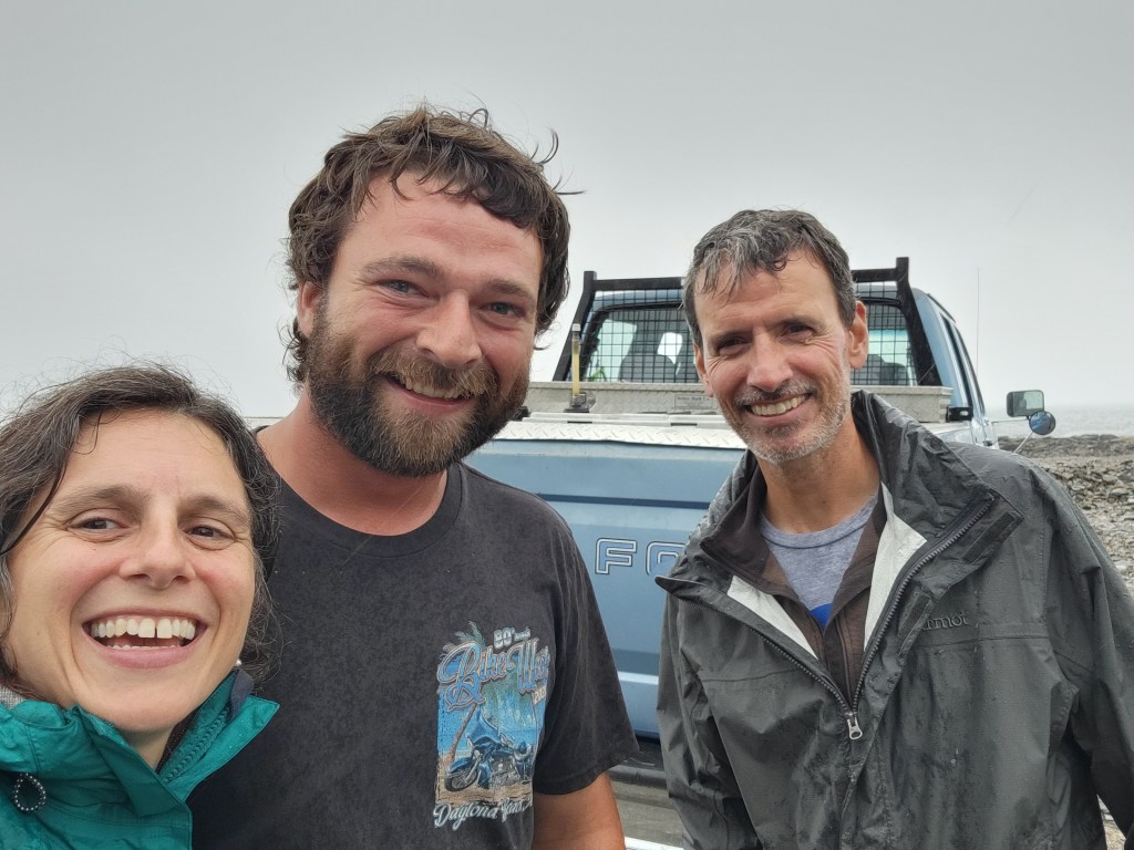Ryan (a different Ryan), a local lobsterman, happened to be driving by in his truck. Before we had even gotten out of the van to assess the situation, and without even seeing us or greeting us, Ryan was on his stomach shoveling rocks away from our embedded front tires with his bare hands.