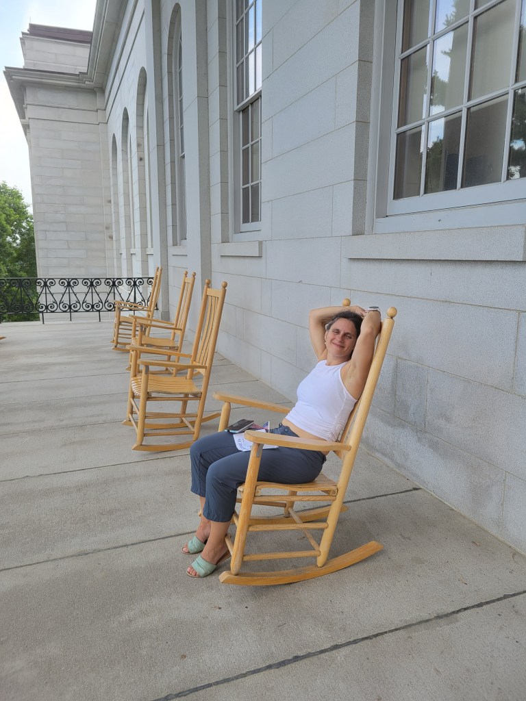 As always, we loved exploring the architecture and history of the state capitol building, and Julie got her grubby little hands on yet another complimentary state constitution. A highlight for us both was sitting on the rocking chairs on the second-floor front porch of the building. Every state’s capitol tells a little bit of the story of not just the governance and history of the state, but of its character too. We were fully feeling the Maine vibe sitting in those rocking chairs surrounded by massive columns of solid stone overlooking the scenery of Augusta.