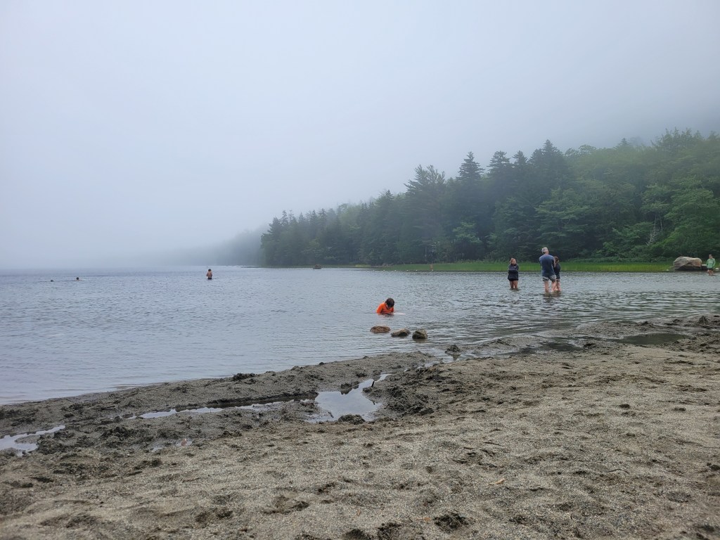 Before long we found a lake to jump in. It was a cold day, and the people on the beach were dressed in pants and sweatshirts. It was kind of a funny scene. All the activities of summer beach life were occurring, but everyone was dressed for fall. We went in the water, and it felt great.