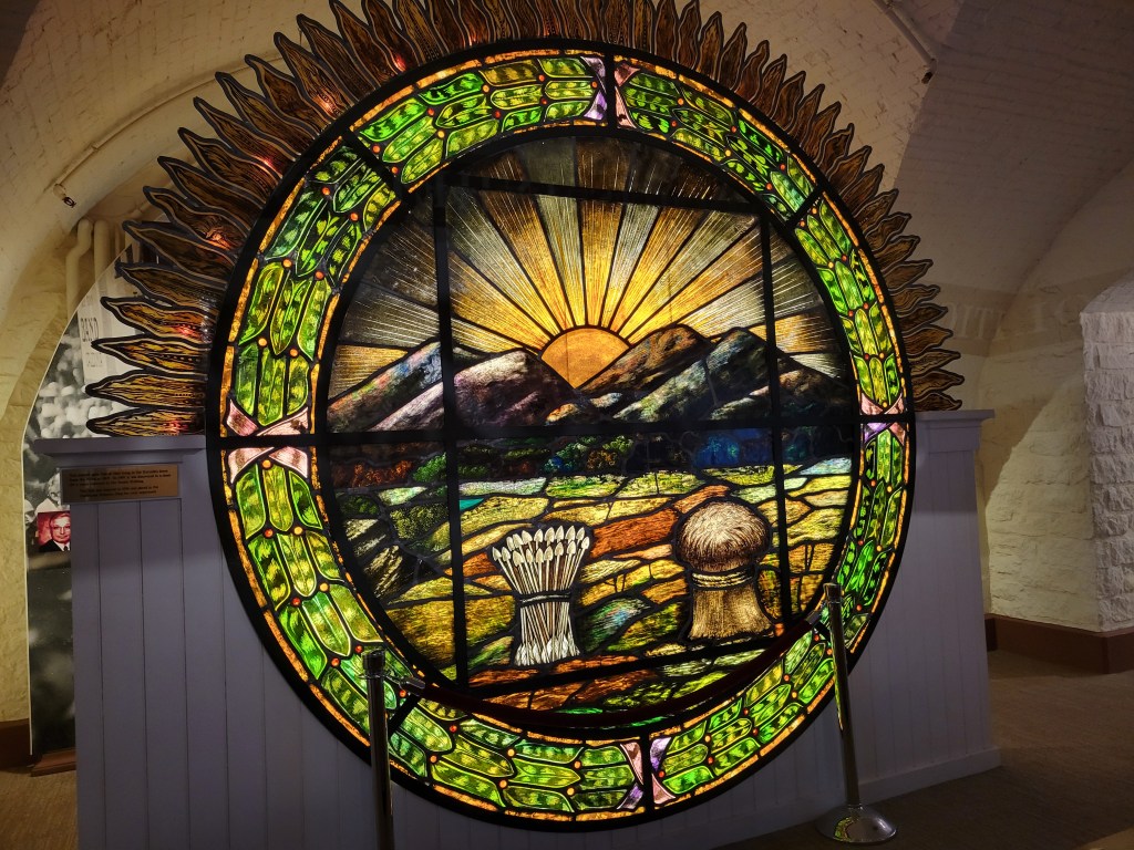 She woke up bright and early and was out of the campground by 6:00 AM, in time to arrive in the capital city of Columbus and make a beeline to the state capitol as soon as it opened at 8:00 AM. As we’ve found to be pretty consistently the case, she was warmly greeted by capitol policeman who was grateful for the visit and enthusiastic to offer recommendations. Though it turned out, maybe for the better, that the gift shop wouldn’t open until 10:00, nor would the tours, Julie made her way through the museum style exhibits in the Ohio statehouse on her own. A huge building, Julie never quite found her way to the senate and house chambers and left without getting pictures of them, content with the knowledge that she and Ryan would likely someday return for another visit. She left on a tight schedule with just enough time for a quick visit to the Ohio State Museum.