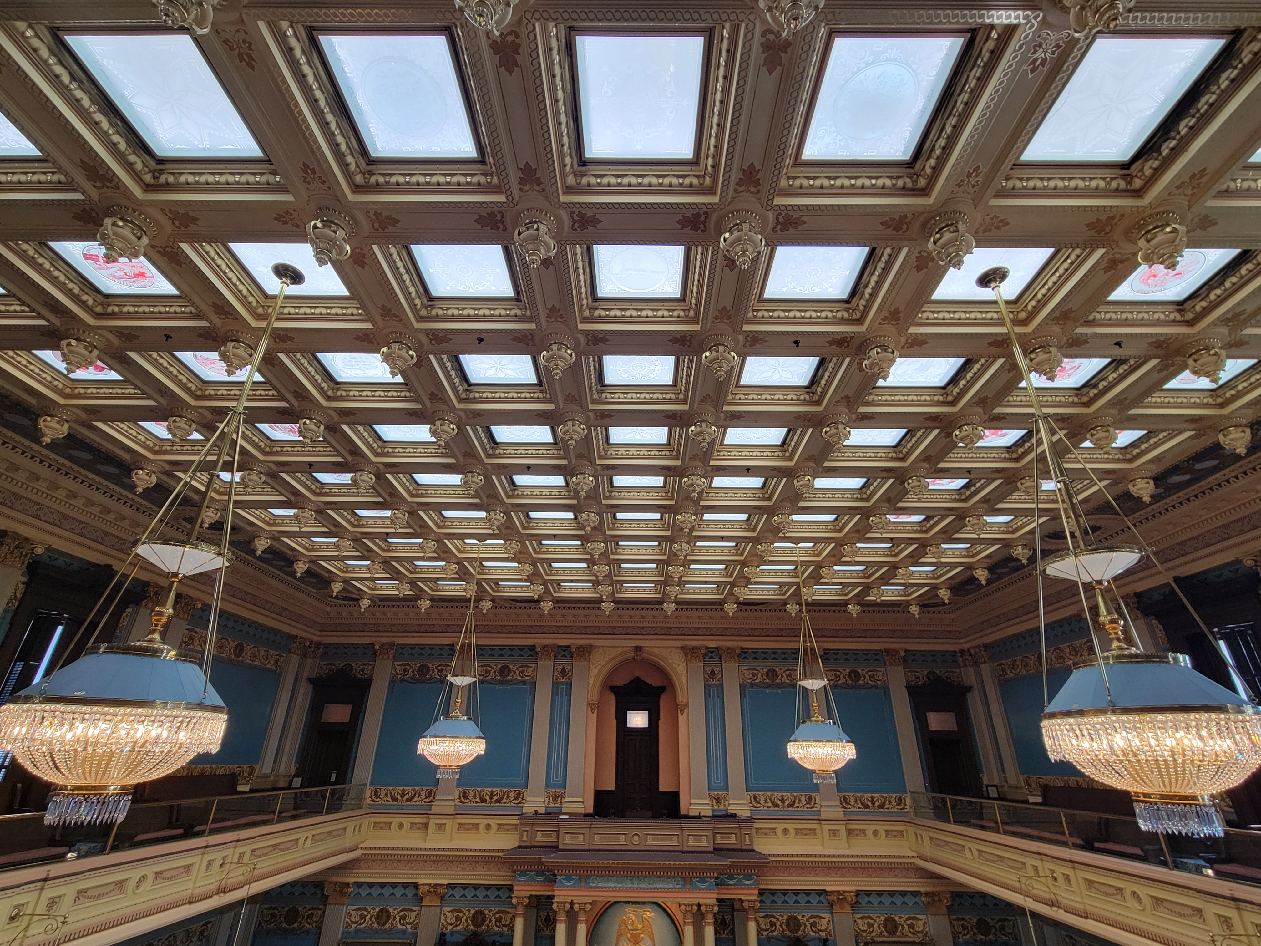 We made our way over to Lansing to check out Michigan’s state capitol building. We were impressed, as we’ve come to be with each state’s capitol. When we first started the trip, we simply thought visiting the state capitol buildings would give us a neat thing to see, but we’d already begun to find it an invaluable way of getting to know a state and getting a sense of what it’s all about. The history, the culture, the civics, not to mention the often jaw dropping architecture. Like a handful of other state capitol buildings we’d visited, we learned about how proud and dedicated to building their capitol on budget Michigan was. It was neat to learn that here in Michigan is where the architectural idea of a domed capitol building found its place in American iconography.