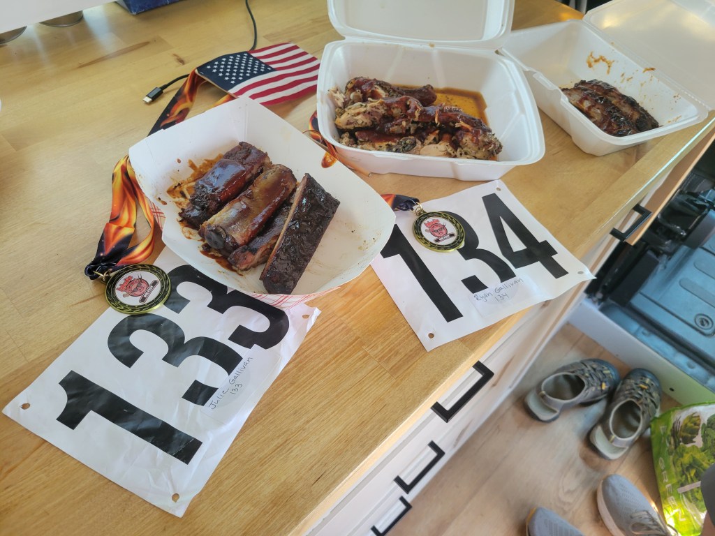 There was a place for attendees to vote on best ribs and we took our job seriously. We stuffed our faces (let’s be honest, Ryan ate responsibly and Julie stuffed her face) and kept plenty of leftovers to last us for the next few days’ meals. We eventually got ribs from all but two places and some BBQ chicken from one more. While we were entering our vote for best overall rib and best sauce, we were chatting with a gentleman standing at the table. We mentioned we had gone to all but two rib places. The gentleman said he was the proprietor of one of the ones we hadn’t gone to yet and wanted us to taste his ribs before casting our vote. We generously agreed to eat a few free ribs. He brought them back and we ate them. He graciously told us it was okay if we didn’t change our vote. We felt bad to cast our vote in front of him, but, though his ribs were good, our prior favorites were still the winners.