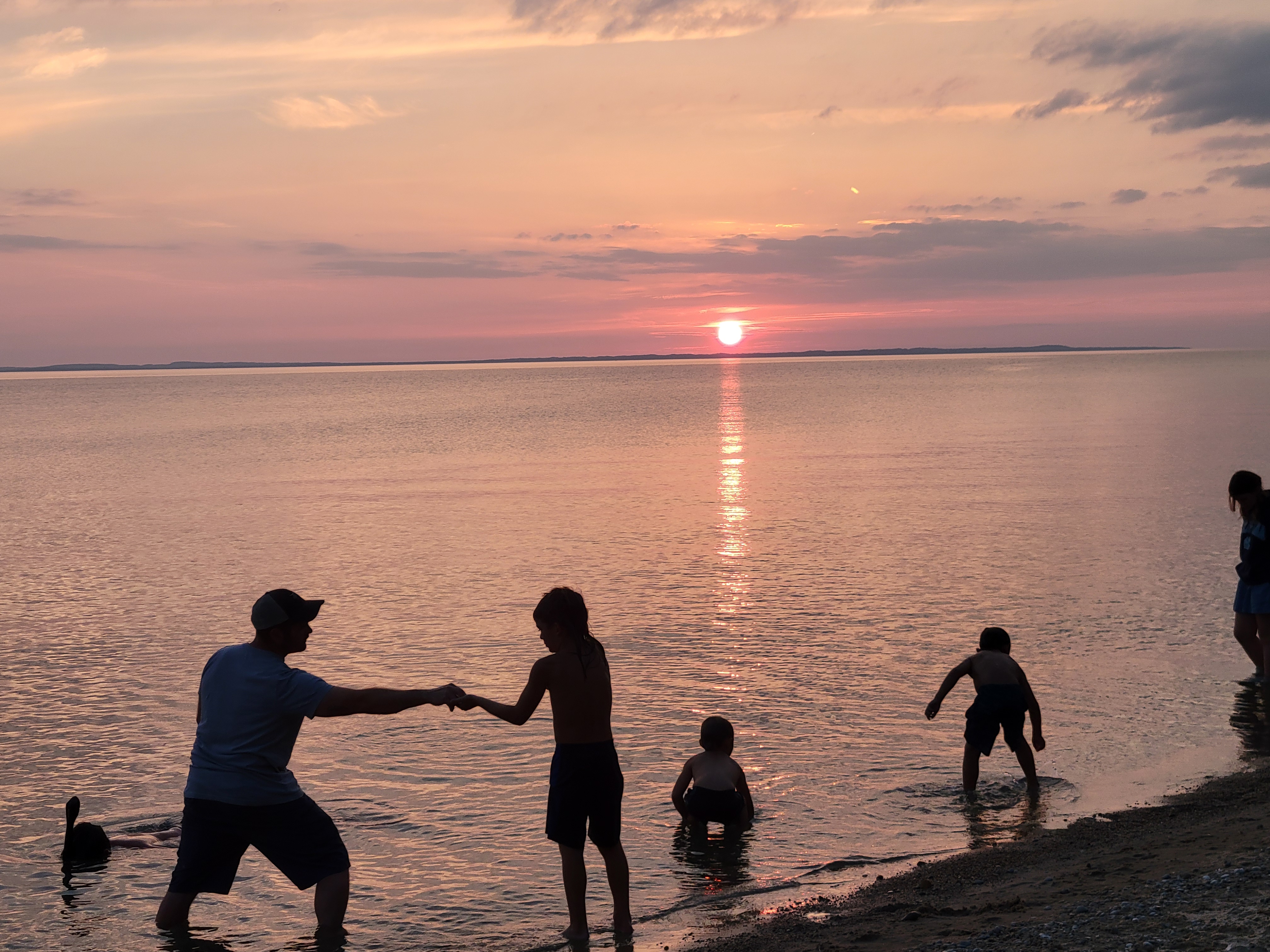 Boy, were we pleasantly surprised when we arrived. It turns out the campground also had a beach, right on Grand Traverse Bay. As soon as we arrived at the campsite and climbed down the stairs to the beach where folks were lined up to watch the sunset, we realized we were in one of the best kept secrets in the USA. Maybe it’s not a secret to everyone, or even to most, but we certainly didn’t know about how gorgeous Grand Traverse Bay was until we saw it for ourselves.