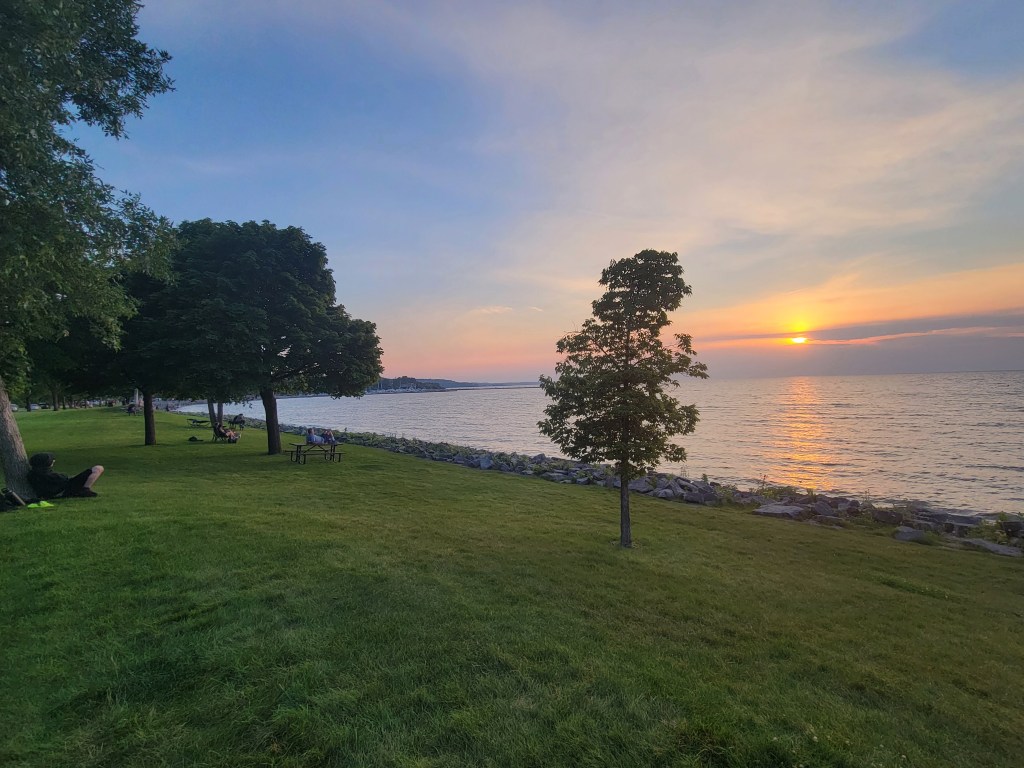 Beginning first thing the next morning, July 31st, we spent every single day for a week working from the moment we woke up until it was time for dinner, excepting stops for eating, bathroom, relocation to different spots, and the occasional jump into the nearest gorgeous body of water for a short dip. Every couple of days, we’d end the evening with a short jog to keep some semblance of running shape for when we returned to our regular 5K routine. Since we both were waking up at 5:00-6:00 AM, that often meant working 10-12 hours per day writing, organizing and uploading pictures, and mapping out state-by-state itineraries. Julie was doing all the itineraries, Ryan was handling pictures, and we divvied out the writing responsibilities. Every night, we would figure out where we would be staying the next night. We were focused, determined to catch up to our present moment on these trip projects, and loving every second of being in upper Michigan for the duration.