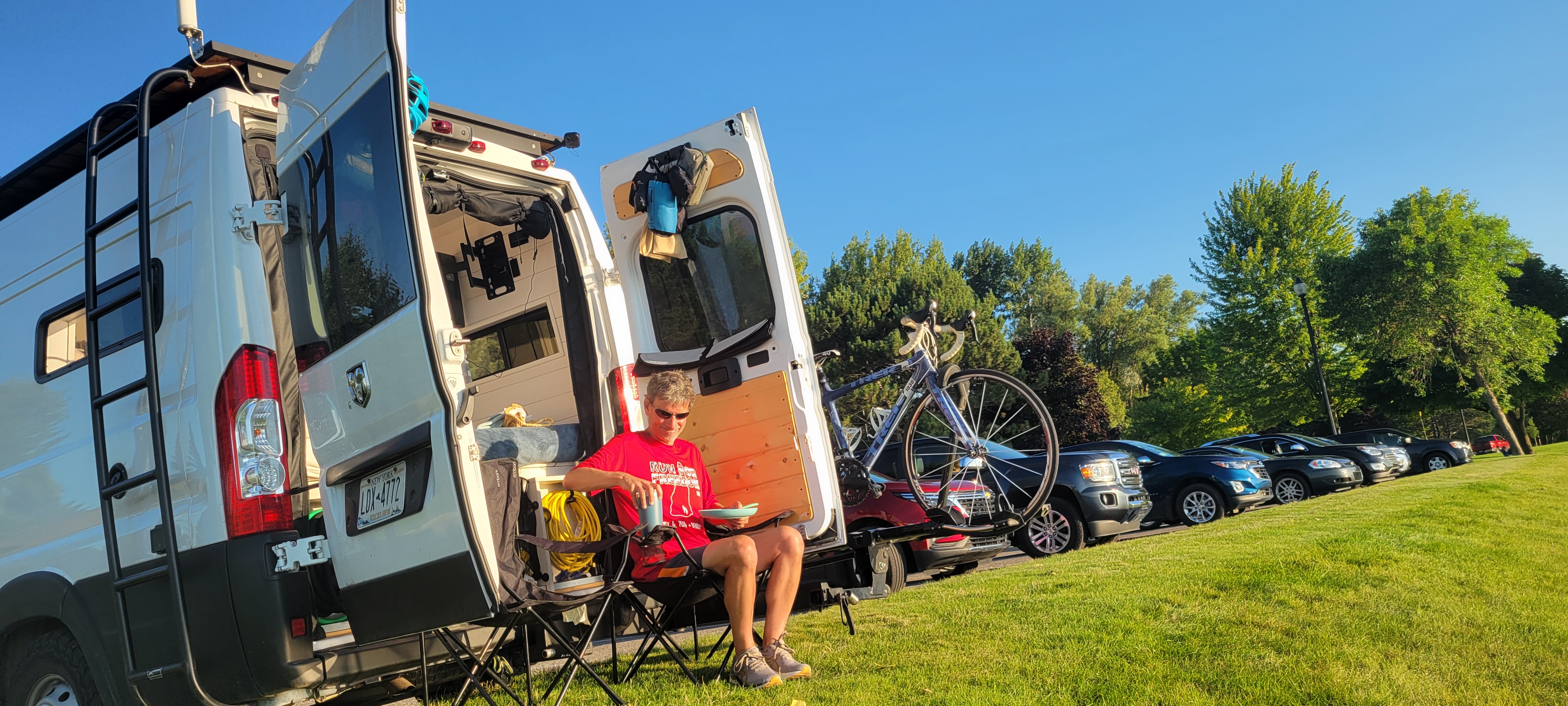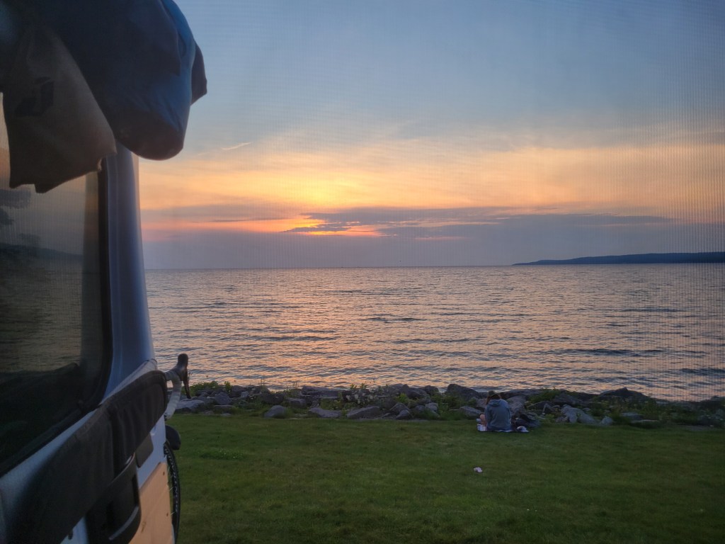 The spot we found was a slice of pure heaven, and we weren’t the only ones that thought that! There were three or four vans also making this waterside parking spot their home for the night. There were views, swimming, and a long bike path right there, and the charming town of Petoskey just a few blocks away. We knew we’d found where we would ride out the rest of our Blog and Itinerary Bootcamp. We spent two out of the next four nights at a nearby State Park to enjoy their beach and all the amenities of a campground – dump stations, dumpsters, showers, and electric hookups – and the other two nights in our free parking spot with a view.