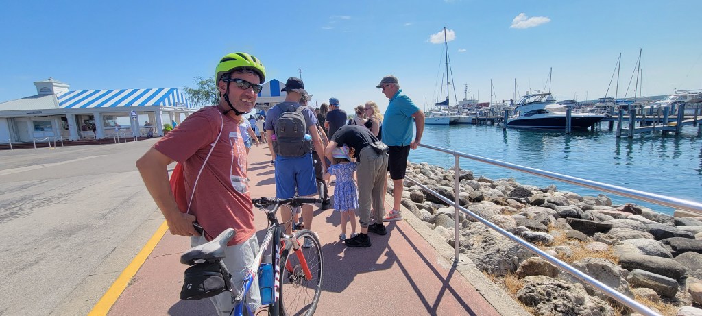 Julie was refreshed and pumped and put her rotating pedals to the proverbial metal, signaling Ryan he’d need to work to keep up. There is nothing like letting loose on a bike. Though Julie was significantly out of biking shape, we had long become certain of our decision to invest in a great bike rack that allowed us to have our bikes with us to grab small biking opportunities like this one. The wind, the water, the scenery, the bike paths, the feel of it all together – just fantastic.