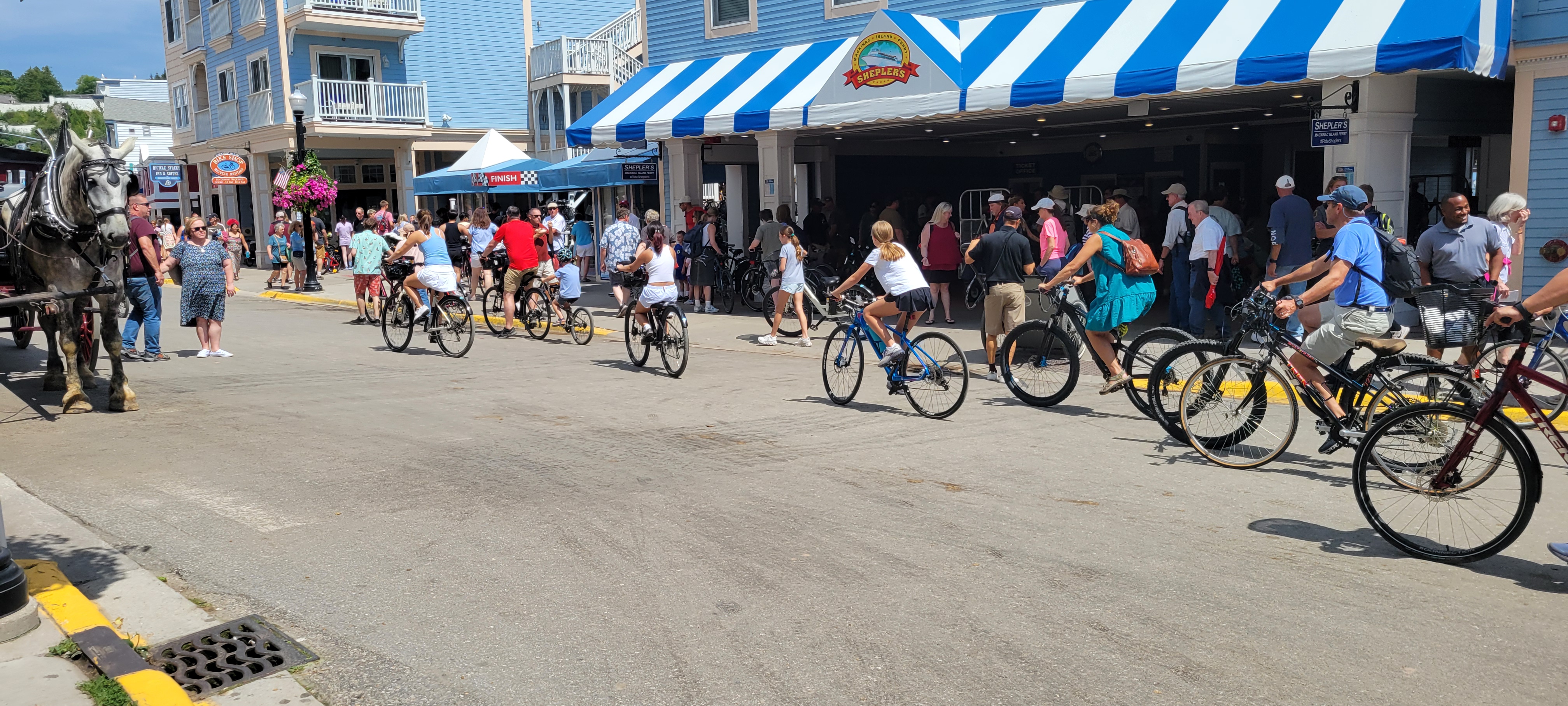 The streets were filled with throngs of bikes and horse-drawn carriages. The smell of horse manure was a light and ever-present undercurrent to every breathe. Restaurants, tourist shops, and bike rentals lined the bustling streets. There were more fudge shoppes than you could possibly patronize. The architecture boasted a callback to another time.