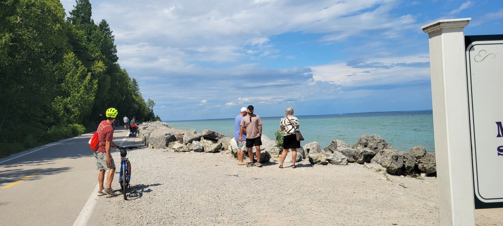 We started with a little walking tour past Fort Mackinac and through some of the walking paths before we hopped on our bikes and rode the path around the island’s perimeter. The path was filled with other walkers and bikers taking in a beautiful sunny day free from the smells of exhaust fumes, the sounds of revving or honking, and whatever that feeling is that exists when cars are gathered.