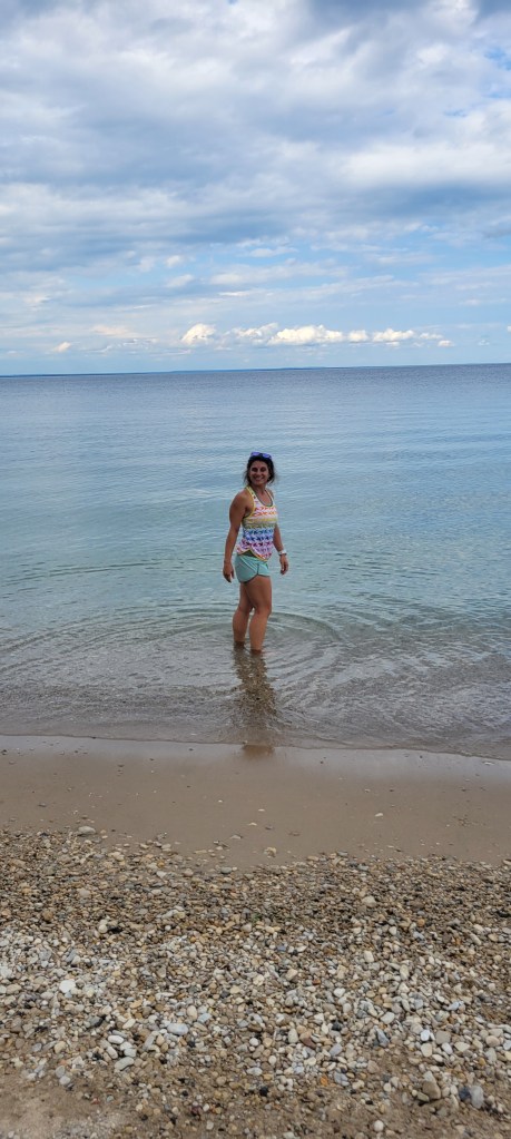We began our drive by traversing the Mackinac Bridge, a five-mile-long suspension bridge that spans the Straits of Mackinac and connects Michigan’s lower and upper peninsulas. Upon landing in the upper peninsula we made a quick stop at a small park so Julie could put her feet in Lake Huron. She quite loves checking things off lists. Once she got her feet in the also crystal clear waters of Lake Huron, she could now, or at least, very soon say she had been in all of the Great Lakes. With Lake Huron checked off that list, we drove up north to visit Pictured Rocks National Lakeshore on the shores of the greatest Great Lake of them all, Lake Superior.