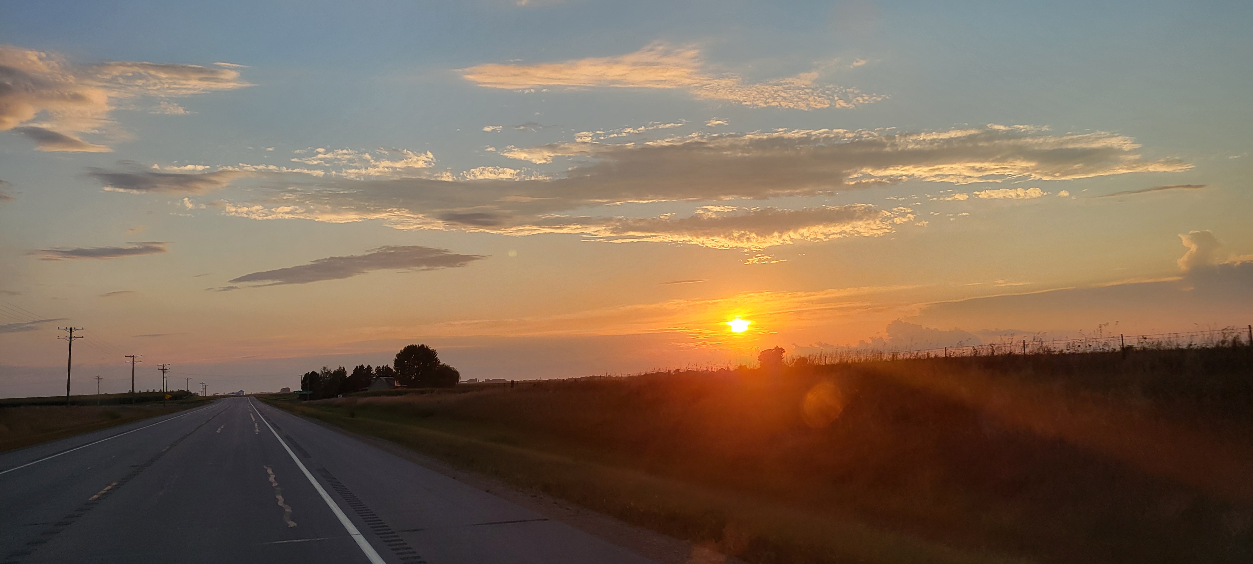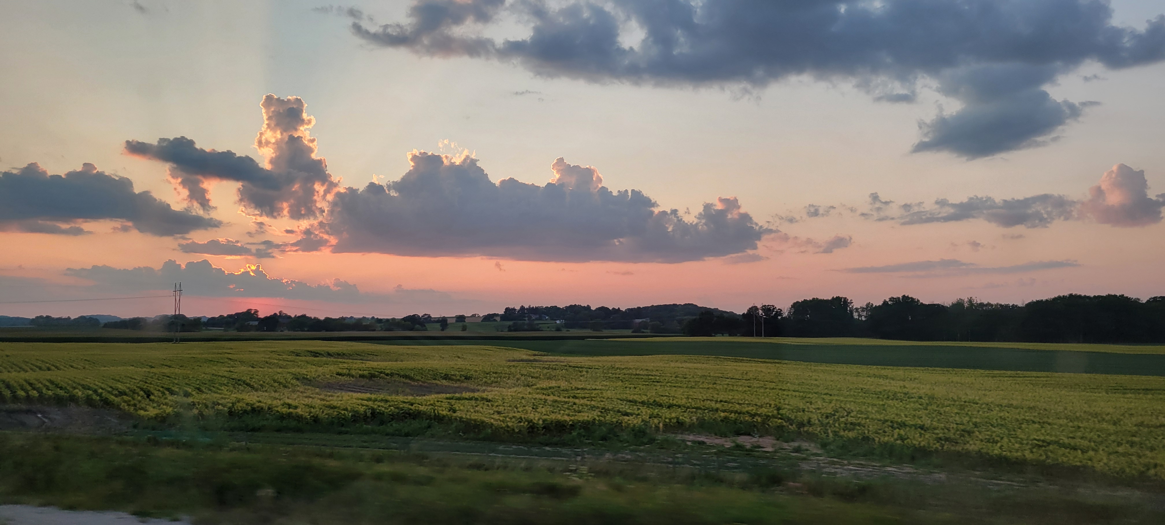 We made our way to a wonderful Harvest Host in rural central Wisconsin that had a huge barn where they hosted weddings and events. We had a nice conversation with the owner when we arrived, which you can read about in the People Along the Way section. The next day we woke to morning fog lit by a brilliant sunrise.