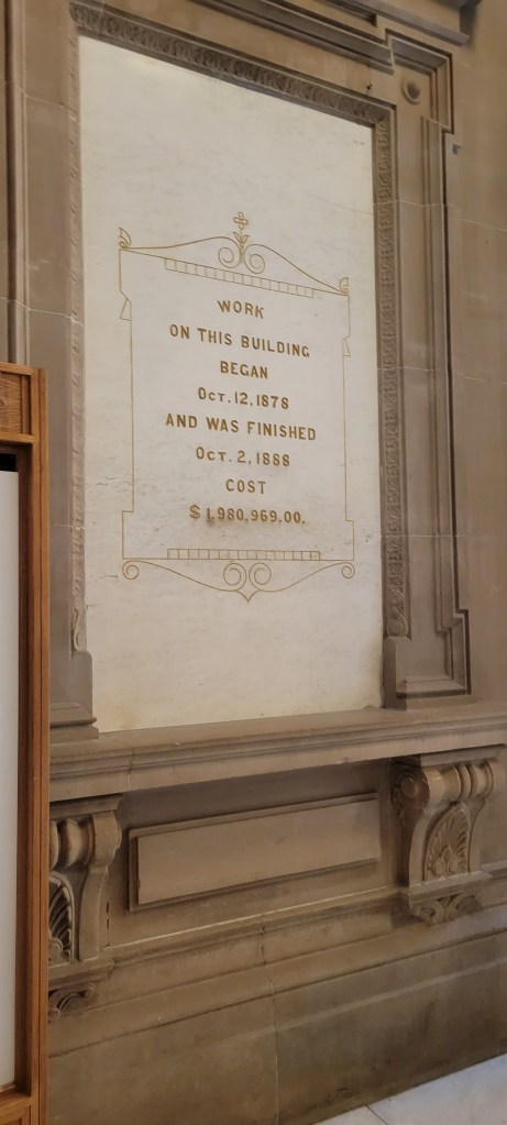 After the important task of finding some boba tea and a massage chair after her first full day in the state capital, Julie split up her two days in Indianapolis with an overnight in a Cracker Barrel parking lot. The next day, she returned to Indianapolis to take in yet another stunning state capitol. She had a tour all to herself. Actually, she was outnumbered by tour guides 2:1. There was the regular tour guide and, also, a sincere young college student learning the ropes that took over the tour for one room in the house chambers. After finishing his spiel, he both modestly and proudly revealed that this had been his very first act as an official statehouse tour guide. He did a great job and Julie was delighted to get to be his first audience. She learned a great deal about the building, the state, and life in Indiana throughout the tour.