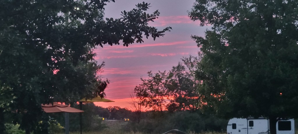 While she enjoyed a beautiful country drive leaving Indianapolis en route to a little town called Peru, her funhouse GPS got her on the wrong road going north, rendering the directions from her Harvest Host useless. She got on the phone with the host, who was kind enough to direct her into the town of Peru where she said she’d meet Julie and escort her back into her own little personal campground on a river. It was as peaceful a night as any, as long as Julie didn’t leave the doors open and let the bugs in.