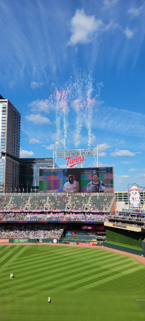 Now that our minds were filled up, time to fill our bellies at the ballpark! Though Julie had her sights set on a ballpark hot dog before entering, they had her at rib tips, and we carried an excessive amount of meat to our seats for what turned out to be a great game with Julie’s childhood favorite team, the Toronto Blue Jays. You can read more about the game in a separate Minnesota post.