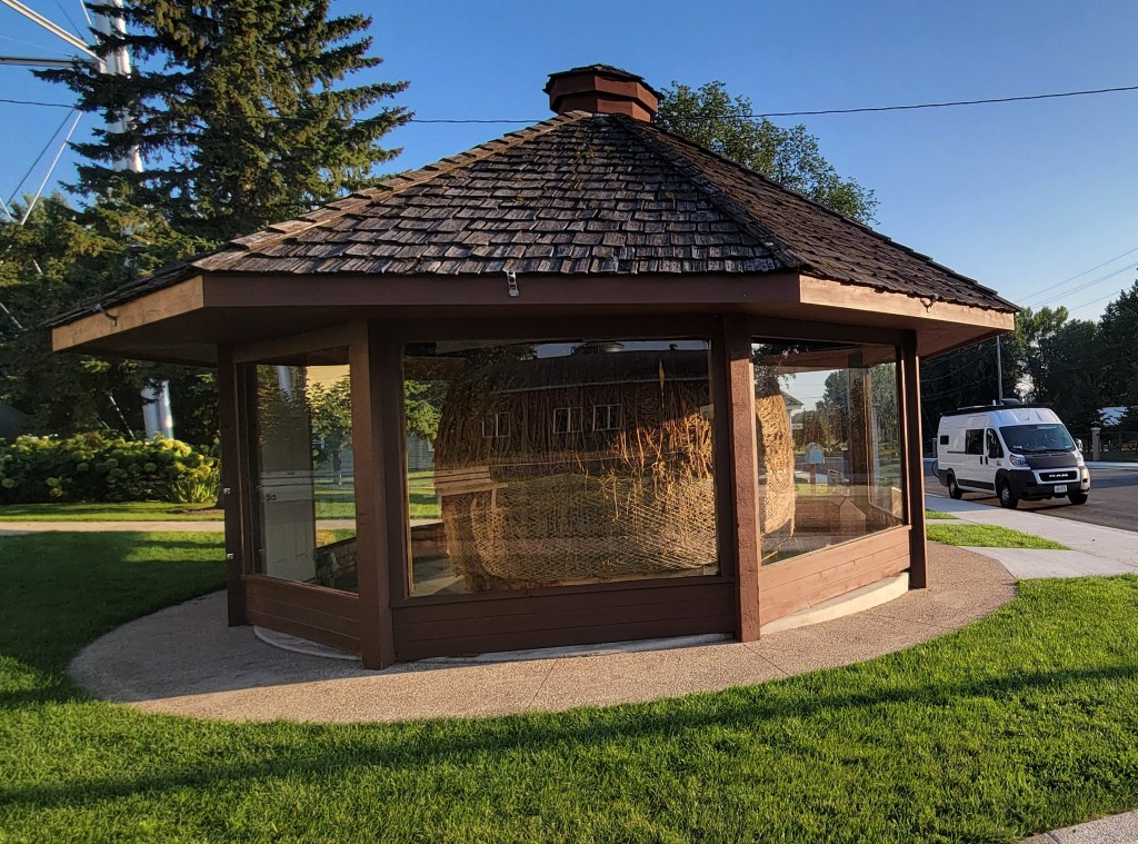 At one point, Ryan turned around and caught Julie in a deep state of revelry staring at the massive ball encased in glass. We were in a town that one would barely notice was a town if it weren’t for the sign declaring it so and this glass shelter of tons of purposefully wrapped twine, all wrapped by one man over the course of decades of his life being the only definitive presence in this town other than a teeny park across the street and a few neighborhood streets off what was barely discernible as a Main Street. But the street signs had little cartoon images of a ball of twine, and the one building that seemed commercial that wasn’t yet anything, indicated that someday it would be a commercial location of some sort and twine would be referenced in it’s name. So, whatever this big ball of twine was and represented to these people, they were embracing it wholeheartedly. And, maybe it was enough that the ball put Darwin on the map and made it a destination for people all over the world to make this detour outside of Minnesota’s big cities. The guest book was filled with names from all over the country and even all over the world of people that had come to stare in awe at, well, a big ball of twine. It didn’t do anything but sit there, but the guest comments in the book were all somewhere between enthusiastic and superlative.