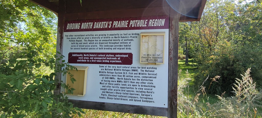 Driving through the backroads of southeastern North Dakota was the dustiest undertaking of which we’ve ever been a part. You can’t see if there are any cars behind you because the dust clouds rising up in your rearview mirror are just too big. And the dust is so fine that when we opened the back door, the bug net and many of the things behind it were covered in a fine brown sheath. The whole van had dust inside of it in gentle but noticeable quantities. Julie coughed for much of the dusty drive with a slight smell of dirt filling her nostrils even though it appeared to be outside closed doors. But we didn’t mind. Nor did we mind our campsite being the one with the most flies we’d seen since Assateague Island in Maryland.