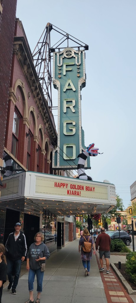 We saw famed wood chippers at the visitor’s center in Fargo. We were absolutely delighted by Fargo’s ability to feel like an urban center and a small town at the same time. We stopped to see Beetlejuice Beetlejuice at the historic Fargo theater. And Julie didn’t have to cash in her birthday present movie coupon to have Ryan go. He wanted to see that movie. Even more so, he wanted to see a movie in this old classic theater. He loves classic theaters for their architecture and history.