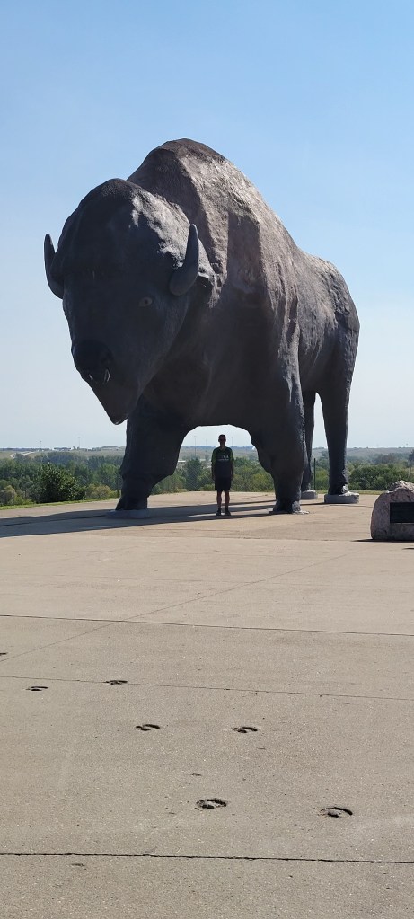 The North Dakota state capitol was the first to strike us in a very different kind of way. It was the first capitol we would see that didn’t boast a dome, but rather a tower. And it was the first we saw that had an Art Deco architectural style, like the Empire State Building in New York City, that we most certainly didn’t expect. Admittedly, we were underwhelmed by it from the outside, as we couldn’t even tell right away that it was the capitol building. Once inside, we came to appreciate its style and, as always, what it had to teach us about its state. It had a wonderful exhibit called Rough Riders Hall of Fame, where portraits hung of North Dakota residents since Theodore Roosevelt who had been making achievements that exemplified the values of the state. We read through them all. It was neat. Eventually we decided the building, even on the outside, represented its state fairly well, being both humble and strong in presentation, much like the state at large.