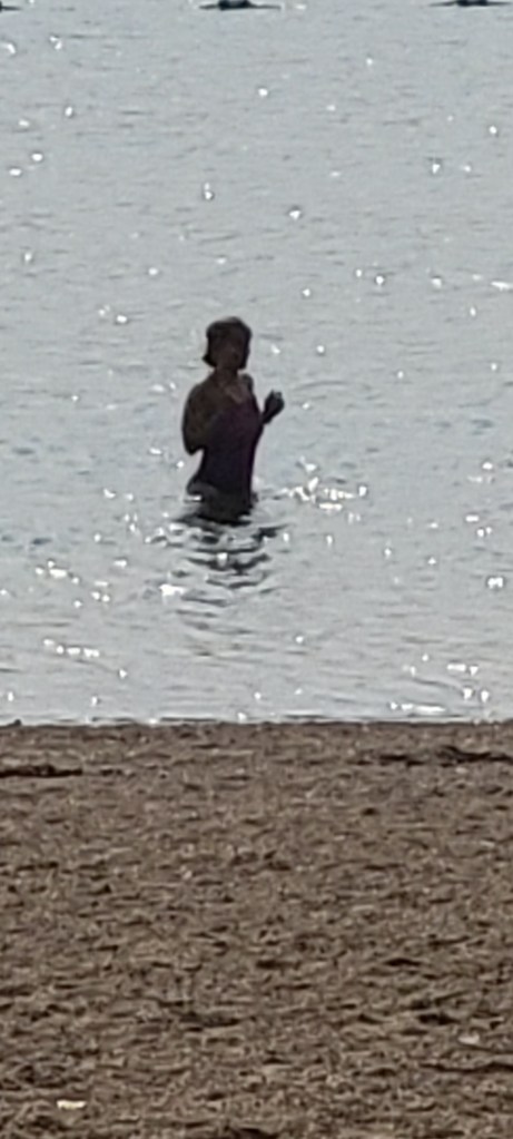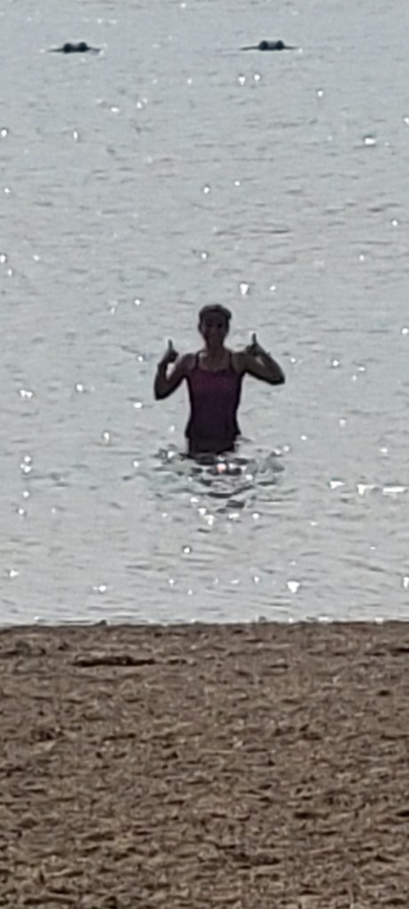Julie still needed to swim in North Dakota and had her sights set on Lake Sakakawea State Park. The views when we got there were heavenly. Once again, we never wanted to leave. Julie spent some amount of time successfully shooing bees out of the van that had snuck in through the occasional gap in our bug nets. When making her lunch she didn’t notice the bee feasting on the jam jar. She yelped as the sharp pain of a sting shocked her. Ice was applied and the pain was quickly forgotten when the opportunity to plunge into the lake’s clear waters was presented.