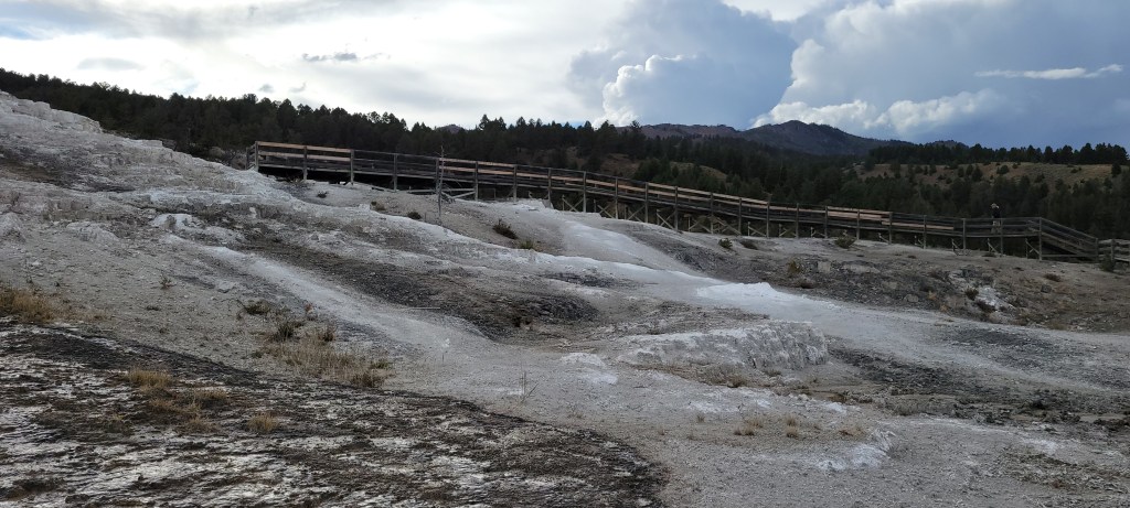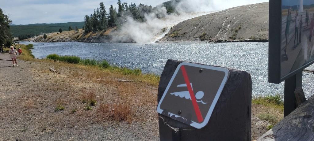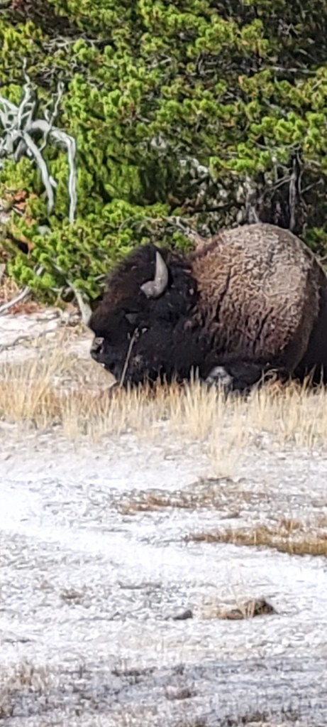Unlike all the “Tourons” – meaning Moron Tourists – we’ve read over the years, we kept to the boardwalks, kept our distance from wildlife, and generally followed all rules and regulations with hearty vigor. We saw plenty of bison, a few elk, and no grizzlies, and we were just fine with that.