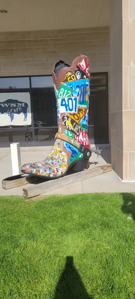 We couldn’t resist but stop at the Old West Museum as we drove by after our 5K, though we didn’t have time to go through it. Instead of taking in the full museum, we chatted with the woman at the front desk, got some literature about the “daddy of them all” rodeo that took place there called Frontier Days, fantasized about coming back for it some day, hit the gift shop, and then headed to our next stop.