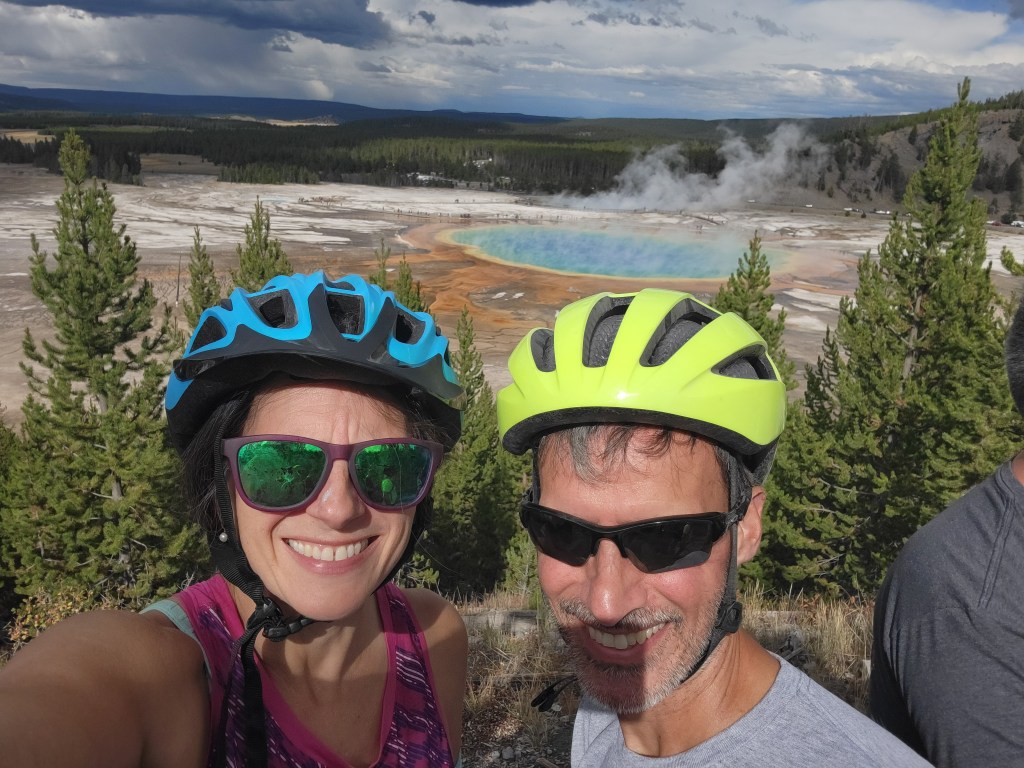 What can one say about Yellowstone that hasn’t already been said? We hit the mud caves, the famous Old Faithful and all of the thermal sights surrounding it, the Grand Prismatic Spring, where we biked along one of the bikeable paths up to the Grand Prismatic Spring overlook. Many of the walkers we biked past gave us varying types of looks that were fairly easy to read into, especially as one of them verbalized the unspoken consensus as we biked by – “Cheaters!” Julie yelled, “Hop on,” and we all shared a neighborly chuckle, though we could tell the resentment was a little real as we cruised by.