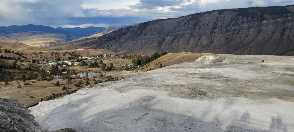 We took in the sights of Mammoth Hot Springs and went for a guided ranger hike to Storm Point on Yellowstone Lake. We stayed two nights and carried bear bells with us (which we later found out are basically useless and just a way for stores to earn a quick buck from ignorant tourists like us, when talking or clapping is the most effective way to warn bears of your approach) and carried bear spray with us everywhere.