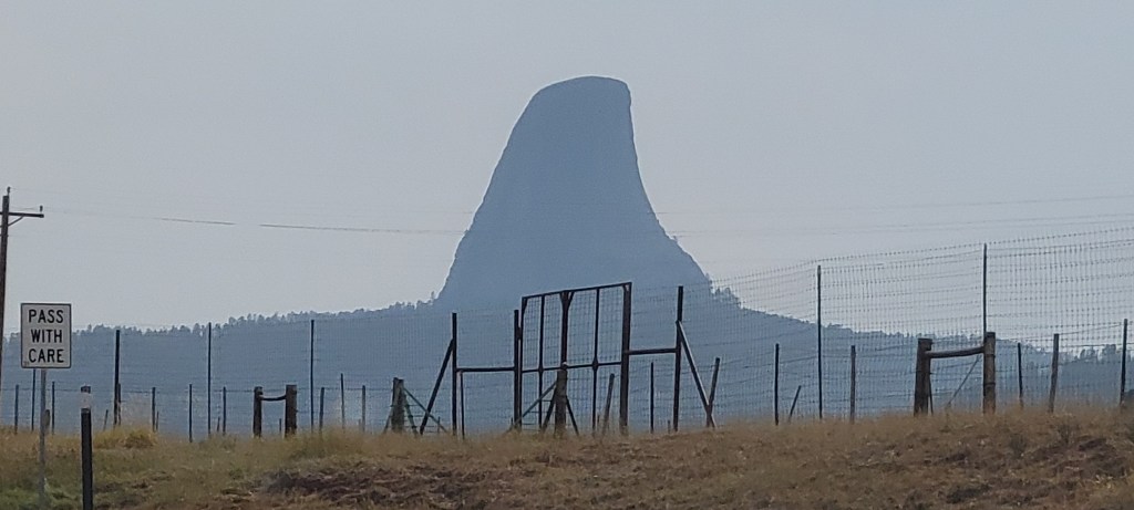 Our first stop was Devil’s Tower (a name which we learned was controversial to the natives of the area, whose native name for the place had been misinterpreted when its modern nomenclature was adopted). Ryan had been there before, Julie had not. She was familiar with it from images and popular culture. When she first saw it from far away, she didn’t quite get the magic.