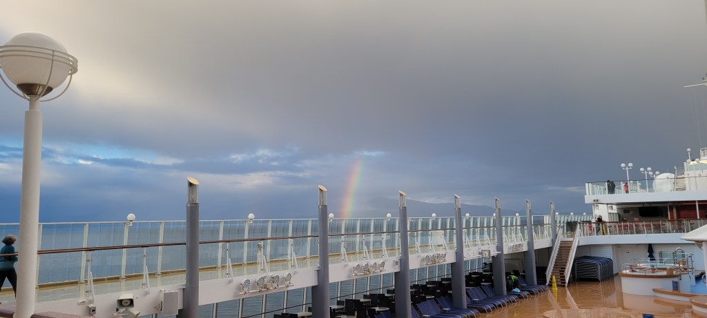 Julie was feeling better now that her revenge fantasies were replaced by empathy fantasies. Then she felt even better remembering the lesson she learned from the parking attendant in Minnesota who had been treated as poorly. (You can read about that in another People Along the Way post.) “People are people. You just gotta let ‘em be people.” And with that, Julie’s swirl of mixed emotions finally settled down to a stasis. No need for excessive revenge, nor for excessive empathy. Just let people be people and go about your life. Julie was still more than ready to escape being in this little corner and interested to return to the freedom of the rest of the ship outside of this woman’s orbit.