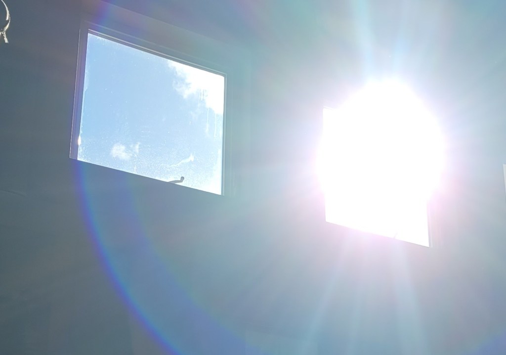 She was pointing at the shade of the window that was at each of our elbows, with zero acknowledgement or care whatsoever that this window was the one at our table and was the only window out of which Ryan had a view. He of course was looking at that same bright sun she was looking at, as they were along the same line of sight to it. He was mildly squinting, but also watching the setting sun very quickly disappear behind the mountains, and he was aware he would only need to squint for maybe all of the next 120 seconds. He also utilized the fantastic endowments of the human body, like neck muscles and the ability to shift his positioning slightly, to endure the temporary and mild discomfort without ado.