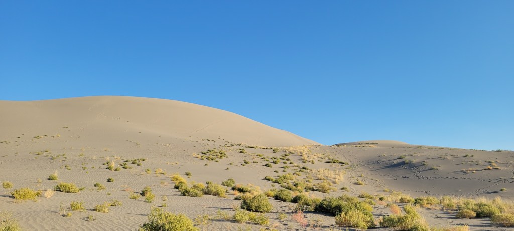We both let go of our feet that we had been digging into the soft ground to counter the pull of gravity. And…aaaand….and nothing. Gravity had nothing to say about the situation. We remained stationary on the top of the dune.