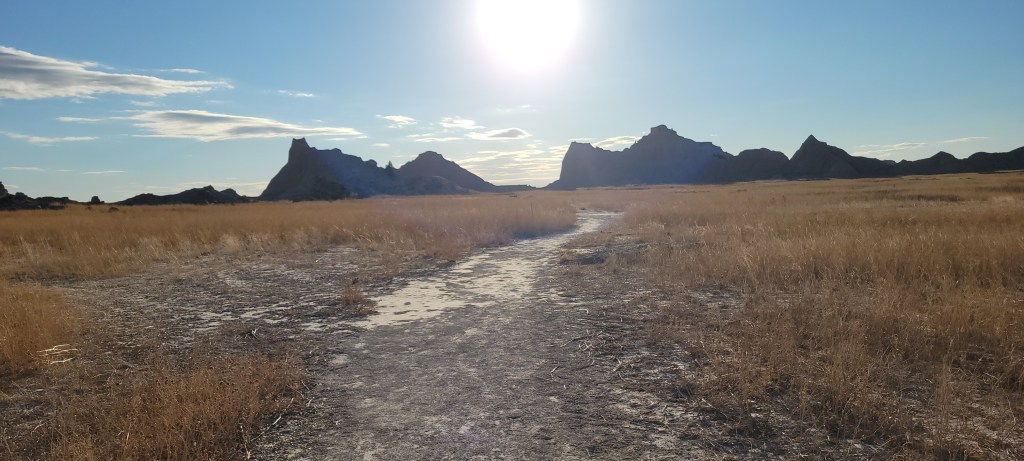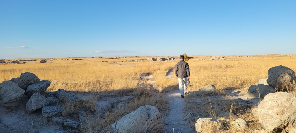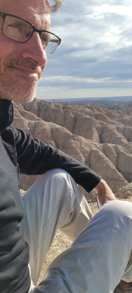 There are places in the Badlands to sit and imagine you are participating in an interplanetary exploratory mission. We found a little trail from an overlook to head out into them and sit and look over the landscape and we felt a deep peace.