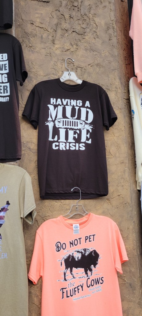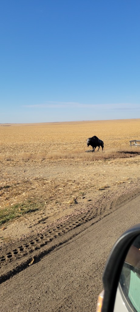 We stopped by a visitor’s center and shook our heads at a stack of bright pink fliers that, still, in this day and age, are apparently necessary for the park service to spend time and money making. The fliers reminded people that, “Bison are dangerous.” We found out the sobering and disturbing fact that the plague is going through the park’s prairie dog population. We weren’t sure if we were hearing correctly so we asked, “The plague? Which plague”?