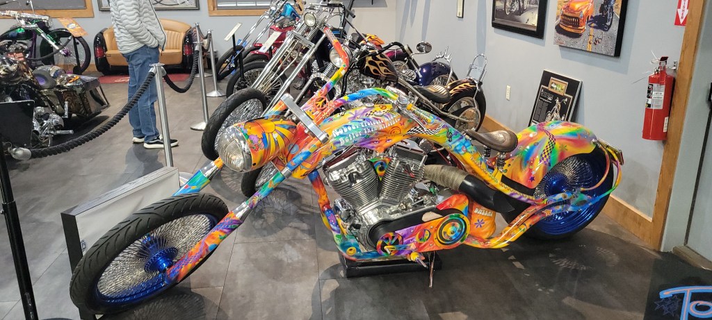 After a thorough education of native life in the area and the pioneers that overtook it, we made our way to Sturgis, South Dakota, the famed location of the biggest motorcycle rally in the world. It was amazing to imagine this little town descended upon by 700,000 bikers, but the town was clearly the right place for it, oozing biker culture everywhere you looked. We walked through a town that proudly wore that claim to fame on nearly every corner, with biker bars and t-shirt shops that radiated the rebellious and proud freedom-loving culture that accompanies two wheels, an engine, and the open road. We got to taste a little of that raw power, freedom, engineering, and artistry at the Sturgis Motorcycle Museum and Hall of Fame.