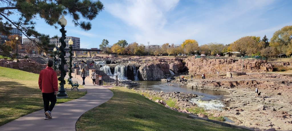 As we drove the roads of Sioux Falls, we both noted the contrast with western and central South Dakota. Unlike those areas, which were uniquely South Dakotan in their landscape and feel, much of Sioux Falls felt like it could be any number of cities in any number of states. The parts of Sioux Falls we did get a chance to see were lovely. The the smell in the air from whatever factory was nearby though – not so much.