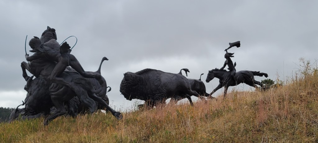 Before leaving Deadwood, we made a stop at the Tatanka: Story of the Bison museum. This was one of the projects that Kevin Costner had invested in creating as part of his efforts to bring the magic, recognition, and appreciation for the Black Hills and it’s first peoples to the larger world. There are striking sculptures there of the Bison and tremendous histories to learn about the Lakota and the tragic story of what happened to the buffalo and the people so tied to it when the white man came through.
