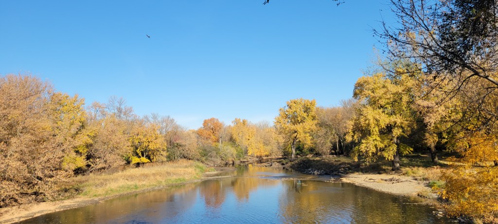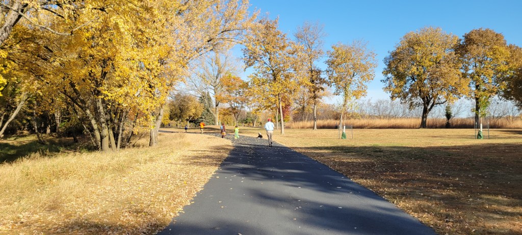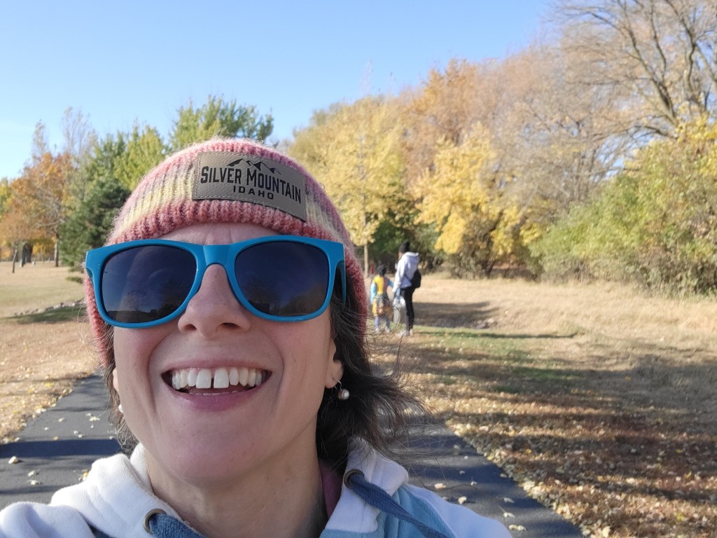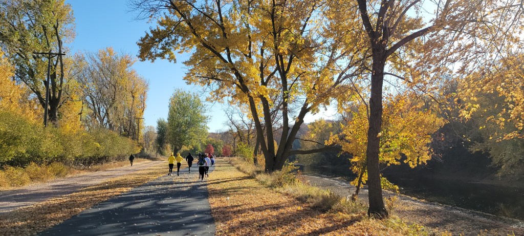 Though billed as a trail run, the 5K was actually a paved path run. The mostly flat out and back race followed the meanders of the Big Sioux River beside trees and green park fields. Because the race was an out and back, we got to high five each other as we crossed paths.