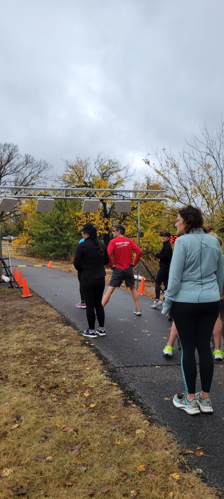 He had known that he needed to be careful coming into the race. Both of his calves had been tight after the previous day’s race, and he was feeling the soreness pre-race. He realized later that, with all the of the routines we had both fallen behind on while putting so much energy into catching up on the blog, he had neglected his daily stretching routine for the past several weeks. It seems the impact of that dormant habit was becoming known.