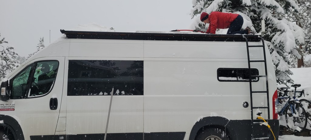 Once again, we received some mildly strange looks (though not as perplexed as others had been) when we opted to sleep in the van while one of Colorado’s unseasonably large snow storms fell upon us in the night.
