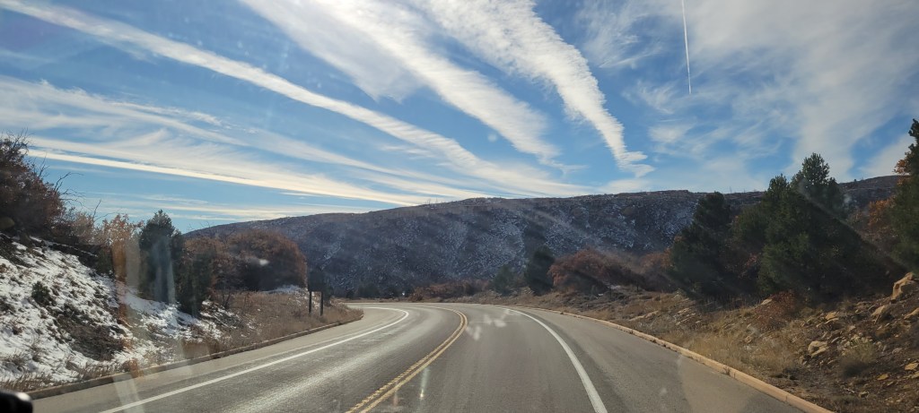 We took in the museum and got a hike started on the trails later than we had hoped. We didn’t want to hike after dark knowing we were now in cougar country and that an unpredictable weatherfront was coming in. We cut our hike to be a fairly short one and headed to Julie’s childhood friend’s house in Evergreen for the evening as the first fall of snow started to come down upon us as we traveled the winding roads of the Rocky’s foothills.