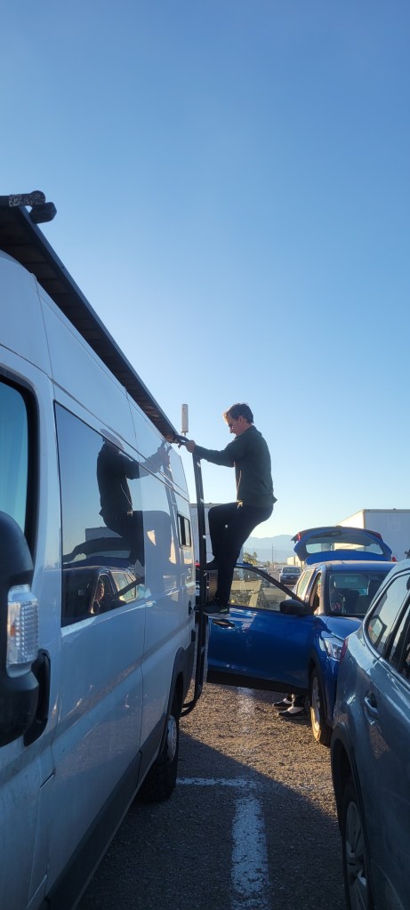 Running through Christmas LaneLas Vegas sunsetLas Vegas bearLas Vegas JulieLas Vegas ladderGet a haircut!Force whispererValley of Fire State ParkDesert vanHiking JulieCrossing the lineLas Vegas Speedway rubber burnEasin’ on down the roadSoaking it inCowgirl hikingValley of Fire petroglyphsValley of Fire moonValley of FireRockin’ itComfy chairMid-hikeValley of Fire yowzaSlot canyon hikeSlot canyon smileOn the trailA long way to goNo sniffing waterLake MeadLake Mead swimLake Mead standLake Mead shoreLake Mead vanHoover Dam from the topHoover Dam spillwayLow water level behind the damNew York in Las Vegas at nightNew York in Las Vegas in the morningEarly morning stripSince they said please…Big ole thingAntler Christmas treeCathedral Gorge slot canyonCathedral Gorge sky viewCathedral Gorge canyonCanyon rim gazeboCathedral Gorge yowzaDesert townAt the moviesLehman Cave entranceLehman CaveLehman CaveWard Charcoal OvensThe view insideThe view outsideGreat Basin sunsetDowntown ElyLonely Road townEureka Opera HouseOpera House insideLincoln Highway markerEureka courthouse stoveEureka courthouse decorationOld-school drinking fountainEurekaEureka old-timerRunning the Loneliest RoadRunning the Loneliest RoadLonely road perchThere it isThe Loneliest Road in AmericaSpring-fed bathtub in the middle of nowhereNice day for a soakThat’s some warm waterLonely parking spotAin’t that the truthLonely curveLoneliest Road salt flatNevada State CapitolOld Assembly chamberHappy guyAntler chair made for Teddy RooseveltSilver minerFallen firefighter memorialSilver State sealDowntown is hoppin’Feral horse at Washoe Lake State ParkMiddle of the roadReno whaleWhat a clownClosest town to Burning ManGerlach archGerlach gas station postBurning Man headquartersBurning Man busNevada postcards