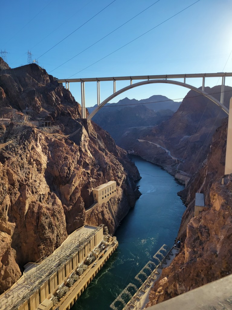 We took a pop in the visitor’s center and got some education on the geology of Nevada and then made our way towards what some dub the 8th wonder of the world, the Hoover Dam. Unfortunately, time was limited and we didn’t have time to get into the visitors center to learn about the engineering marvel we were looking at – so we settled for simply gawking ignorantly at what we can only assume was an absolutely near impossible undertaking. We were in awe at the audacity of man and man’s ability to then back up that audacity. No matter what one might think about the wisdom or ecological impacts of damming an entire river, there is no question that it is a true feat of human ingenuity, ambition and prowess. Another way to say it – it was pretty neat.
