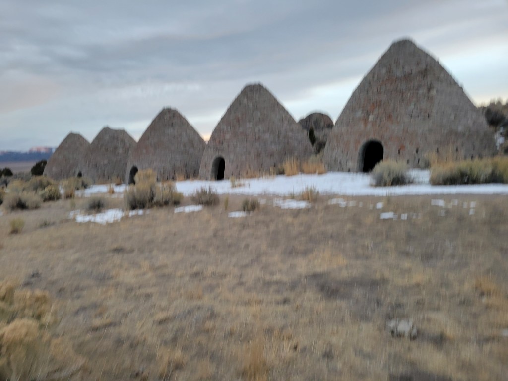 After Great Basin, we headed west to the Ward Charcoal Ovens State Park which was dedicated to six ovens formerly used during Nevada’s silver smelting heyday to create the massive amounts of charcoal necessary to turn ore into silver. Once the silver boom had passed, folks used them as shelters and bandits used them, on occasion, as hideaways from the law. They were impressive structures and the panoramic views at this point surrounding them were just incredible.