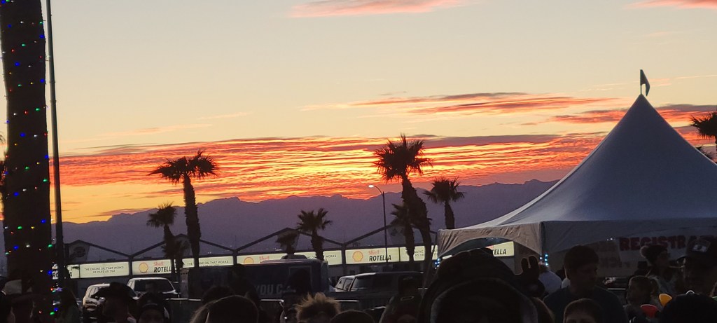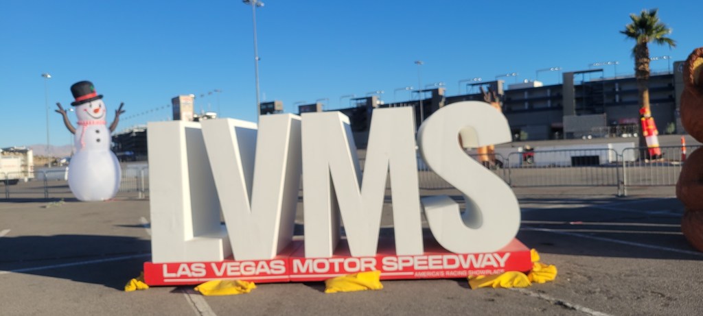 Our first stop of our Nevada visit was the Las Vegas Motor Speedway where our 5K would take place at 4:30 PST, just after sunset. When we arrived, the sun was still up and we took in the engine revving and smoke-making of an amateur event on a small track across from the speedway.