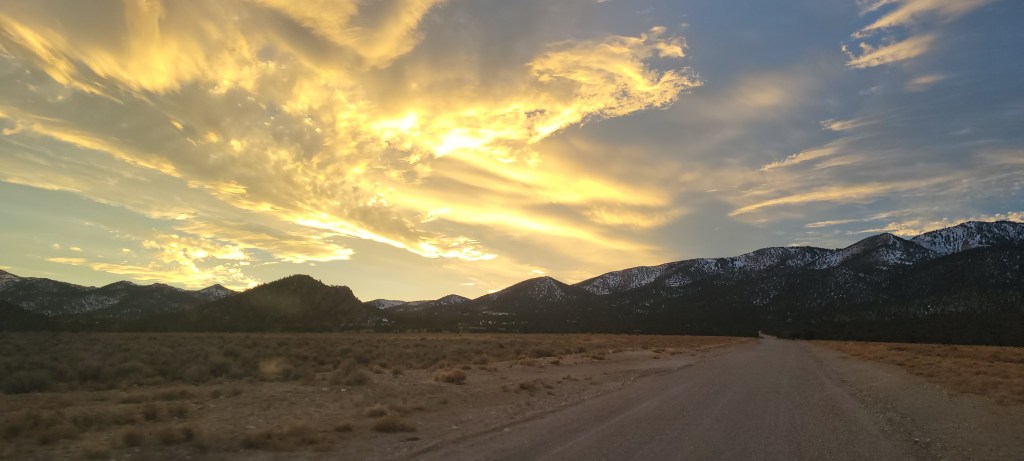 At some point some 30 or 40 years ago, some journalist at Life Magazine had dubbed US-50 through Nevada as The Loneliest Road in America and the folks along this route had taken full ownership of the term. Nevada’s website encourages folks to take a roadtrip on “The Loneliest Road”, detailing all the neat state parks and towns to be found along the route. “Loneliness” is another human experience as subjective as beauty. To us, there was nothing lonely about this road and certainly not more or less than any road that went mostly through the countryside with towns few and far between and small when they did arise. We’ve both met plenty of people that have felt deep loneliness in the middle of highly populated areas. Julie is not a person that experiences loneliness often, but the few times she has, it was while being around other people. You could make the argument that it was because we are here with each other, and that might have something to do with it, but we would argue that there was nothing lonely about this road at all. The scenery was endlessly encompassing and the towns along the way were charming, friendly and fascinating. Each one we went through, we wished we had more time there. We passed through the first of them, Ely, without having much time at all to stop and then drove to a rest stop right next to US-50 just outside of the small town of Eureka to spend the night.