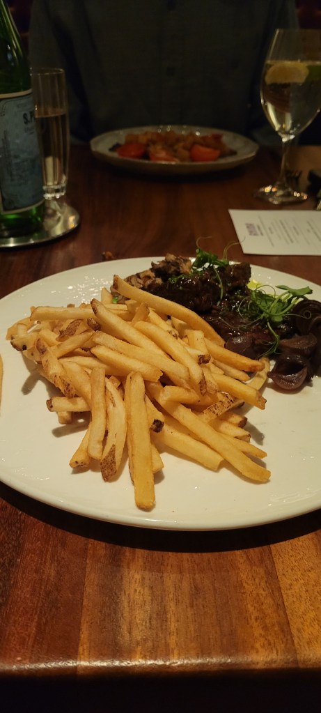 The dinner was FANTASTIC. We ate at a restaurant called Anima by EDO. How did they make cauliflower taste THAT good? We both like cauliflower, but that was next level. And, where did they find green cauliflower anyways? We are taking their word for it that that is what it was and, either way, we don’t care. It was so delicious, as was every other thing that landed on our plates, from Julie’s short rib to Ryan’s Iberica (which we found out was some kind of pork shoulder). Two thumbs straight and enthusiastically up.