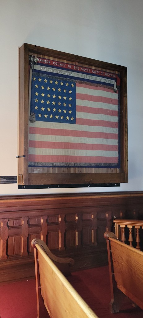 In order to get to Carson City in time to see the Capitol, we had to forgo our originally planned stop at the Hidden Cave in Fallon, Nevada. By doing so, we made it just in time with an hour to spare. The capitol was beautiful and the folks inside were friendly and eager to tell us anecdotes of its history. The house and senate had moved out of the building to another building across the capitol complex back in the 70’s, but we were able to see the Governor’s reception room and the old house and senate and Supreme Court. We tried to get into the new house and senate building but, even though we made it 10 minutes before they closed, they wouldn’t let us in because of the time and because the construction going on on the building would preclude us getting any good pictures.